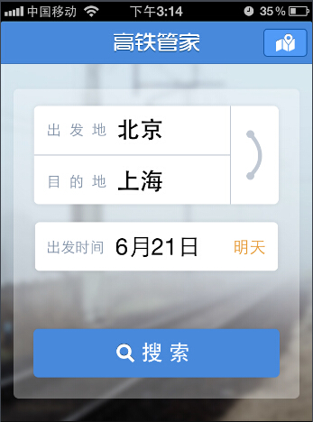 软件简介: 高铁管家是由活力天汇科技公司开发的一款手机客户端购票软件,具有自动抢票的功能,不限于高铁,还可以购买普速列车车票。 运行平台:Android、IOS 下载地址:http://www.133.cn/gaotie.html 注意:软件版权归开发者所有,软件风险由网民自行甄别,由于使用软件而带来的一切问题与本站无关。 ![]() ![]() ![]() |