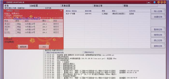 软件简介: 吾易抢票助手是一款收费抢票软件,可以实现多用户多线程抢票,自动识别验证码,智能变换CDN服务器,抢票成功后可以通过QQ、飞信、邮箱等方式通知购票人付款。该软件下载后需要向开发者捐款并获得激活码后才能开始抢票。 软件类型:电脑客户端(独立软件)、收费软件 下载地址:http://www.we12306.net 注意:该软件需要向开发者捐款并获得注册码后才能使用,具体请查看其官网说明。软件版权归开发者所有,软件风险由网民自行甄别,由于使用软件而带来的一切问题与本站无关。 使用方法: 可以参考其官网的说明(包括软件的安装、使用和常见问题)。 ![]() ![]() ![]() |