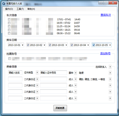 车票无忧是一款早期的火车票抢票软件,分为个人版和专业版,个人版为免费软件,专业版为收费软件。